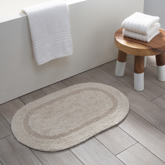 Serene Bath Mat Oval Cotton Reversible Natural 18" X 28" Gsm 1500