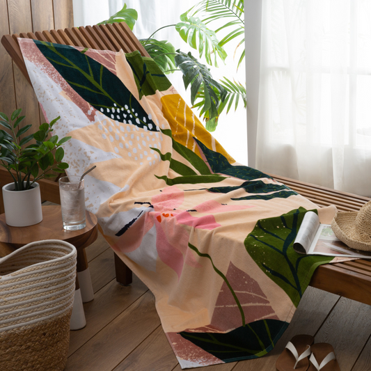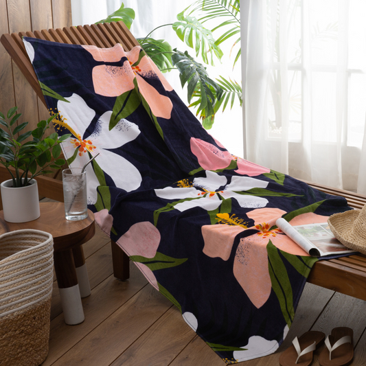 Tropical Flower Velour Beach Towel 32" x 64"