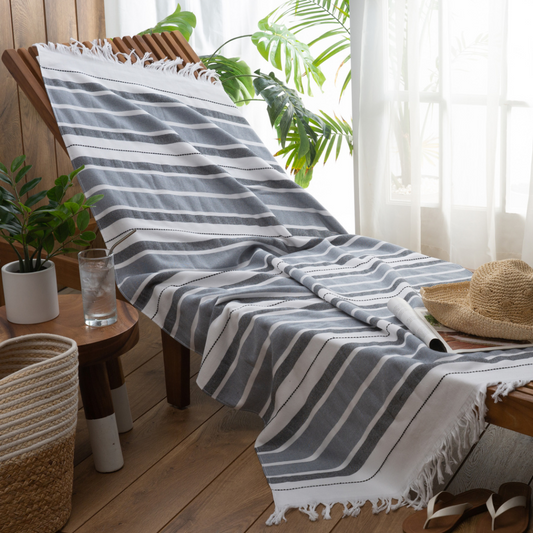 Antalya Beach Towel With Fringe 35" x 70" Grey