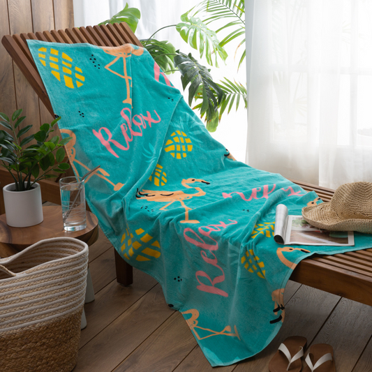 Flamingo Pineapple Velour Beach Towel 32" x 64"