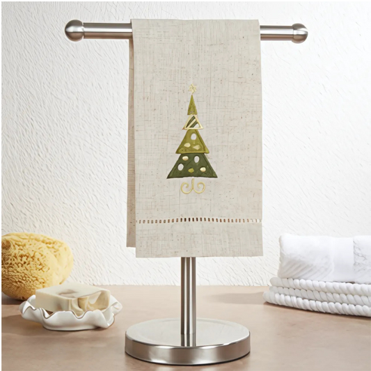 Embroidered and Hemstitched Christmas Tree Guest Towel