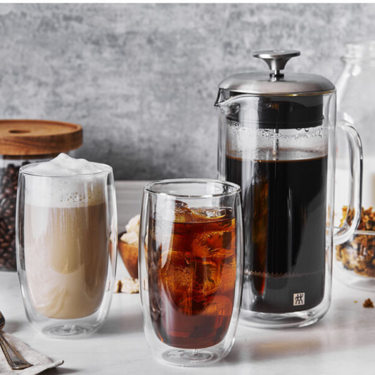 Sorrento Double Wall Glassware French Press And Latte Glass Set of 3
