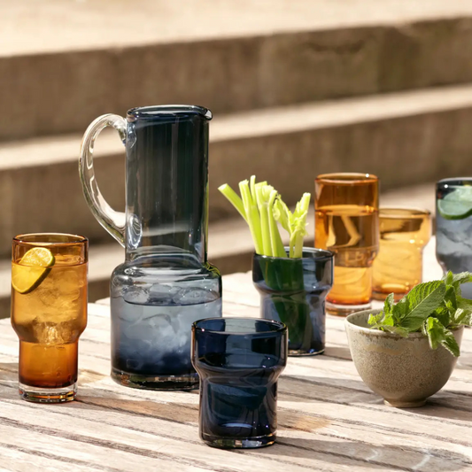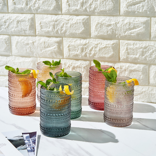 Set of 4 Muted Acrylic Ribbed Highball Drinking Glasses