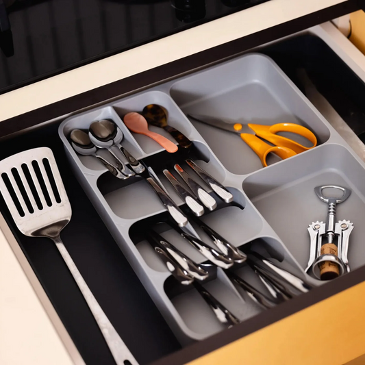 DrawerStore™ Grey Expanding Cutlery, Utensil & Gadgets Organizer