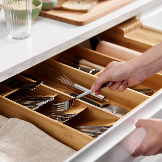 DrawerStore™ Bamboo Cutlery, Utensil & Gadget Organizer