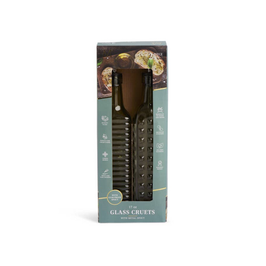 Set of 2 500ml Dotted & Ribbed Glass Cruets