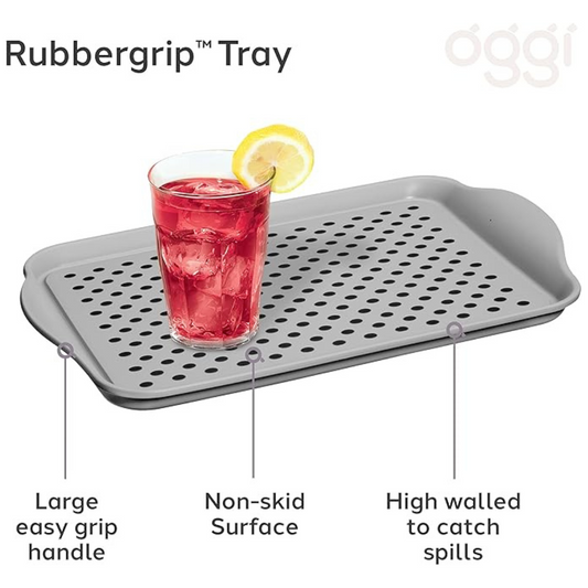 Rubbergrip Anti Slip Rectangular Serving Tray with Handles - Gray