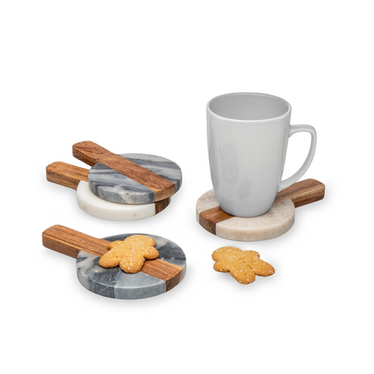 Marble & Wood Paddleboard Coaster - Set of 4