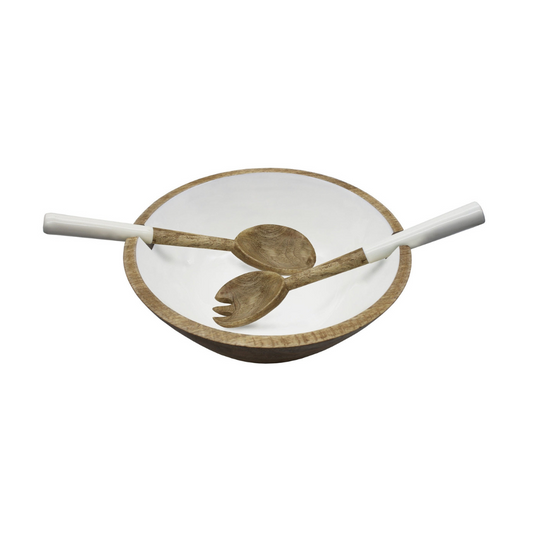 Wood & Enamel Salad Bowl with Servers