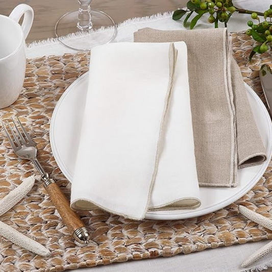 Stonewashed Stitch Border Napkin Set of 4 - Ivory