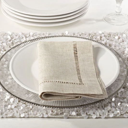 Paris Placemat with White Embroidery - Denim Brown Set of 4
