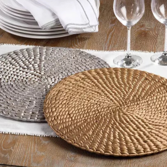 Mantel individual tejido de jacinto de agua plateado de 15"