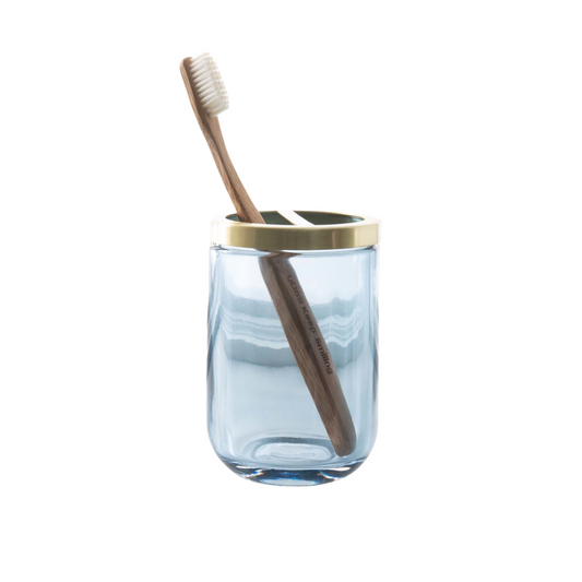 Portacepillos de dientes de cristal Jasper azul/dorado