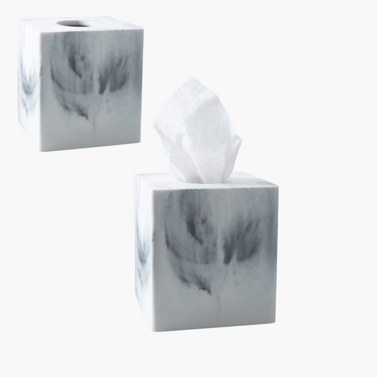 Caja de pañuelos de mármol blanco/gris de Michaelangelo