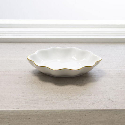 Jabonera Pavona Porcelana Blanca/Dorada