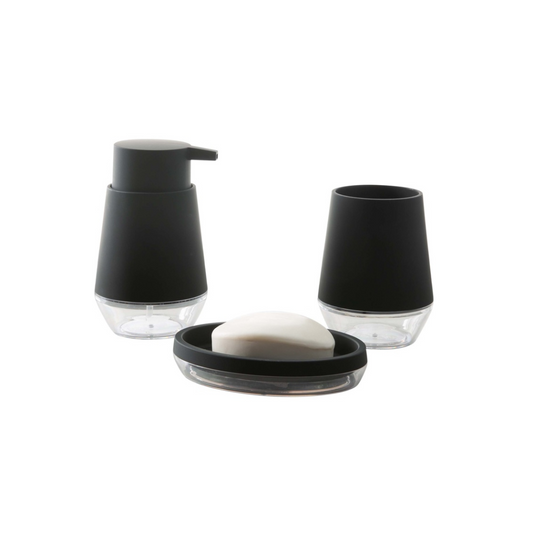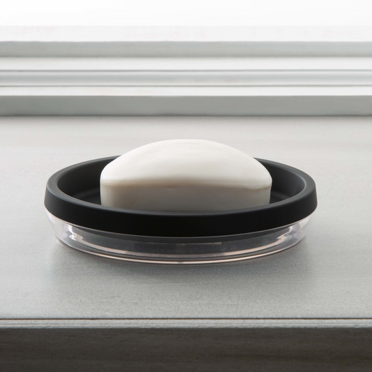 Jabonera Oslo de plástico transparente con acabado suave al tacto, color negro