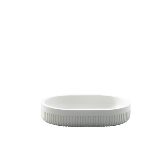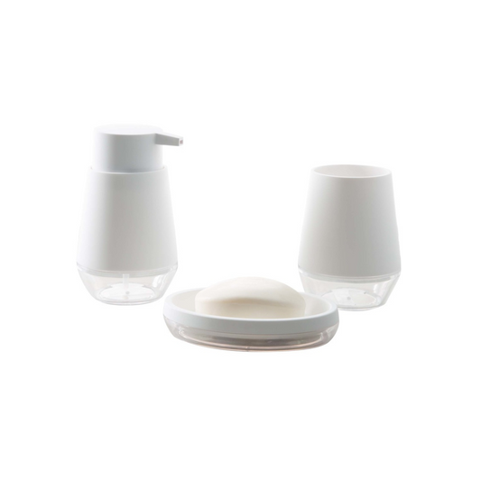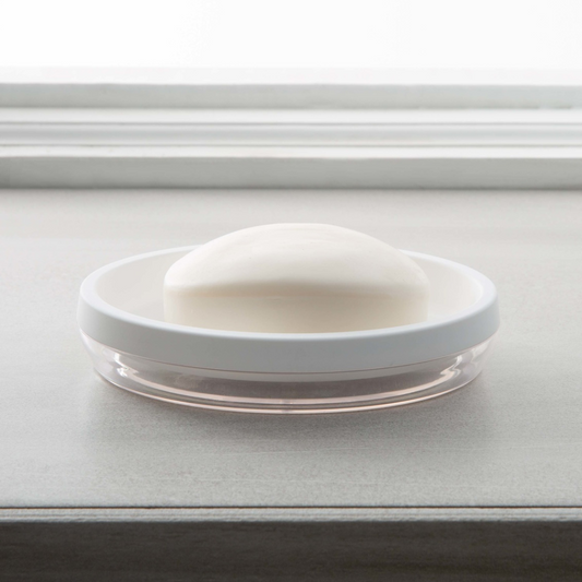 Jabonera Oslo de plástico transparente con acabado suave al tacto, color blanco