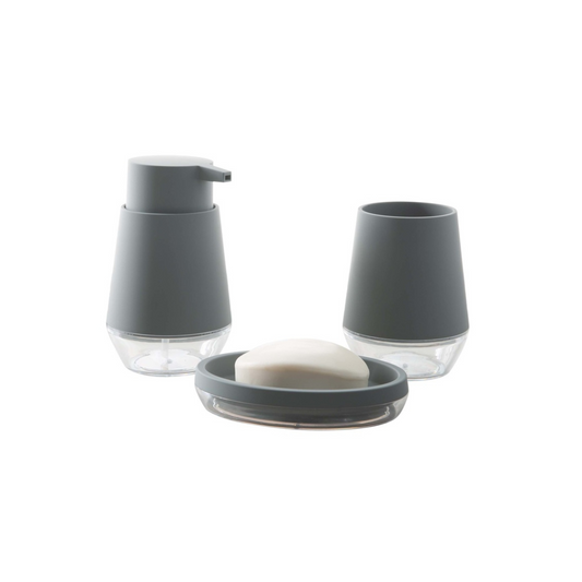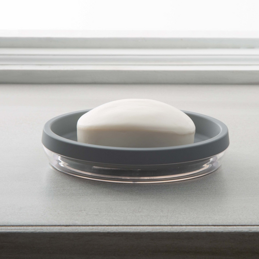 Jabonera Oslo de plástico transparente con acabado suave al tacto, color gris