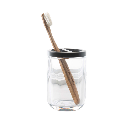 Portacepillos de dientes Jasper de vidrio transparente y negro
