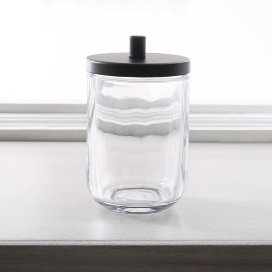 Tarro de algodón de jaspe de vidrio transparente/negro