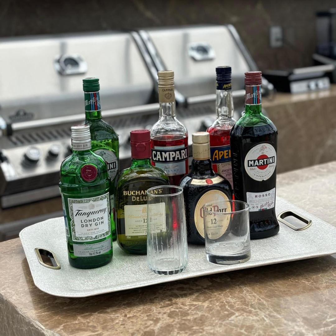 Bandeja grande para servir con asas de metal - Amara Beige