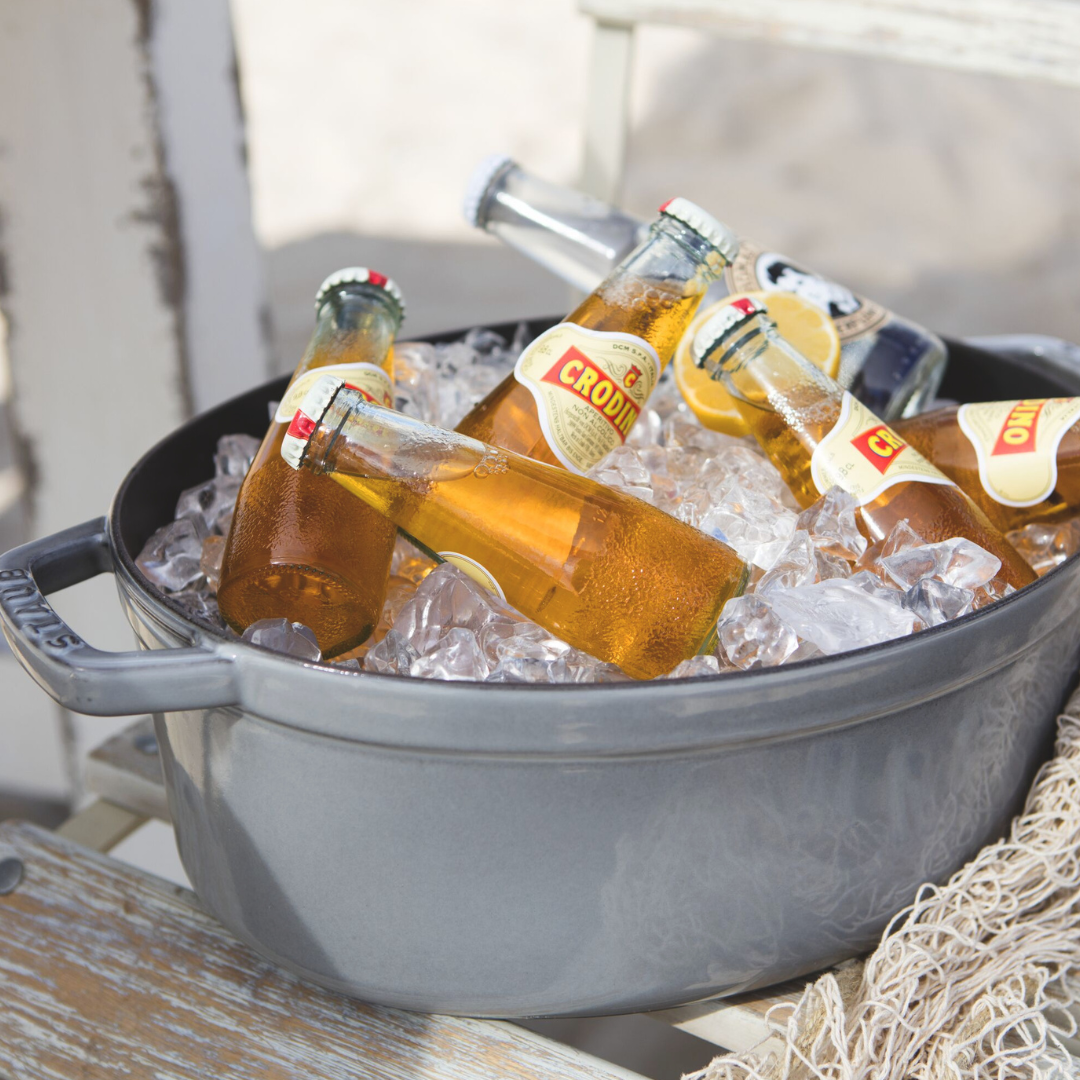 The oval Dutch oven offers the ideal shape for braising whole roasts or baking whole chicken and duck. And like all STAUB cocottes, this roomy pan is unsurpassed for slow-cooking meat and vegetables to tender perfection, and for simmering hearty stews and soups.