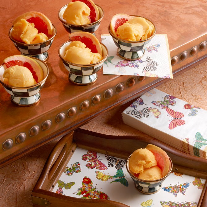 A perfect introduction to the world of MacKenzie-Childs: greet friends old and new alike with a batch of warm, home-baked treats inside our Cookie Jar with Enamel Courtly Check® Lid. The glass body offers a preview of the tasty goodness in store, and the lid—hand-painted with our Courtly Checks® and topped with a faux-cinnabar knob—lends signature style. Equally suited to hold cotton balls on the bathroom counter, clothespins in the laundry or cookies for your four-legged friends, you’ll find yourself inventing uses just to incorporate the subtle splash of checks into every room.