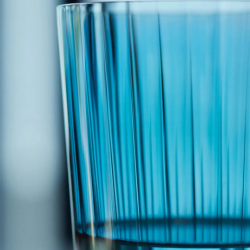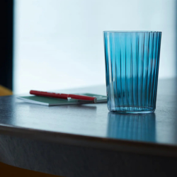 A set of textured tumblers with fine walls, painted by hand in an assortment of tonal sapphire blues. For water, lager and long cocktails.