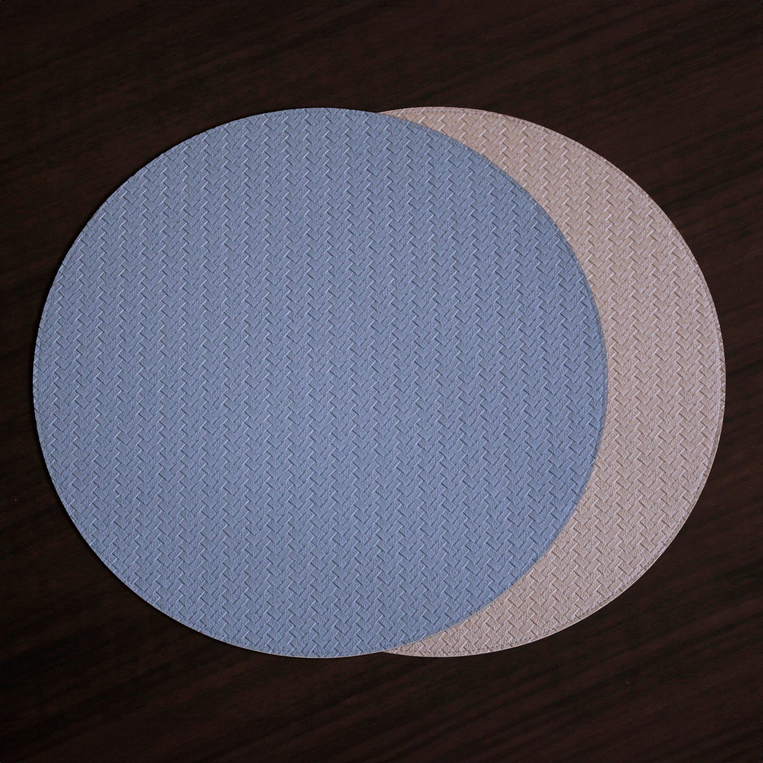 VIDA Snakeskin Reversible 15" Round Placemats Set of 4 (Slate Blue and Tan Brown)